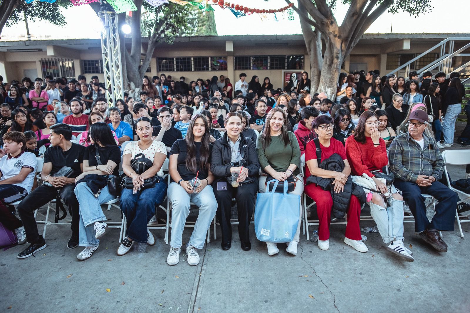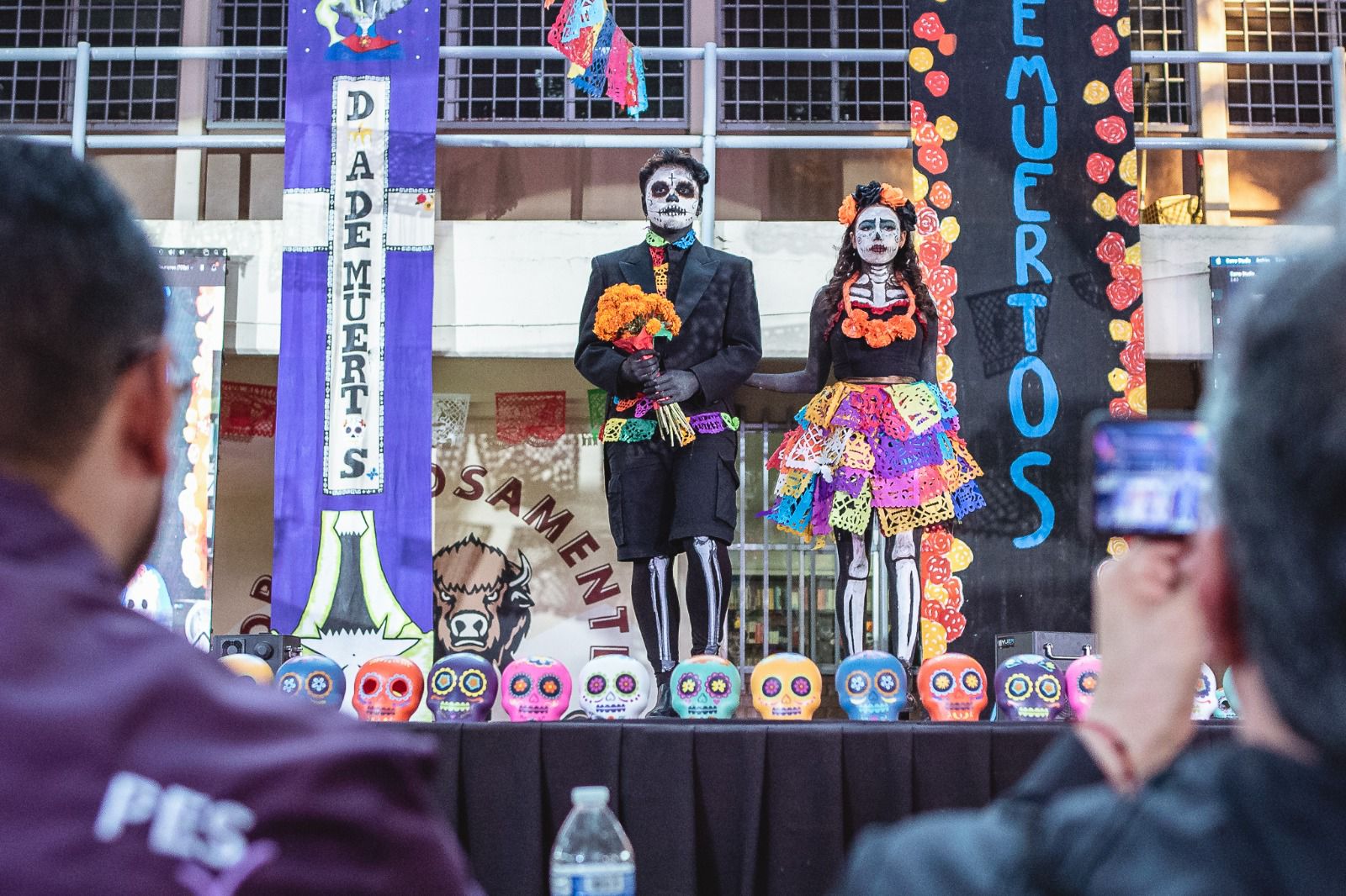 El plantel lució un ambiente lleno de color y tradición gracias al trabajo de las Unidades Académicas Curriculares, que elaboraron catrines a escala humana, alebrijes, pendones conmemorativos y un hermoso altar de muertos, mostrando el talento y la creatividad de las y los estudiantes en actividades de Arte, Humanidades y Comunicación.