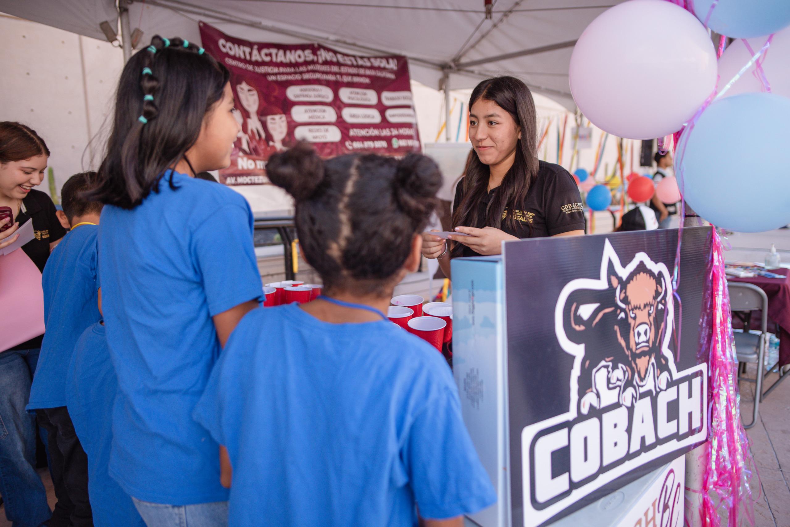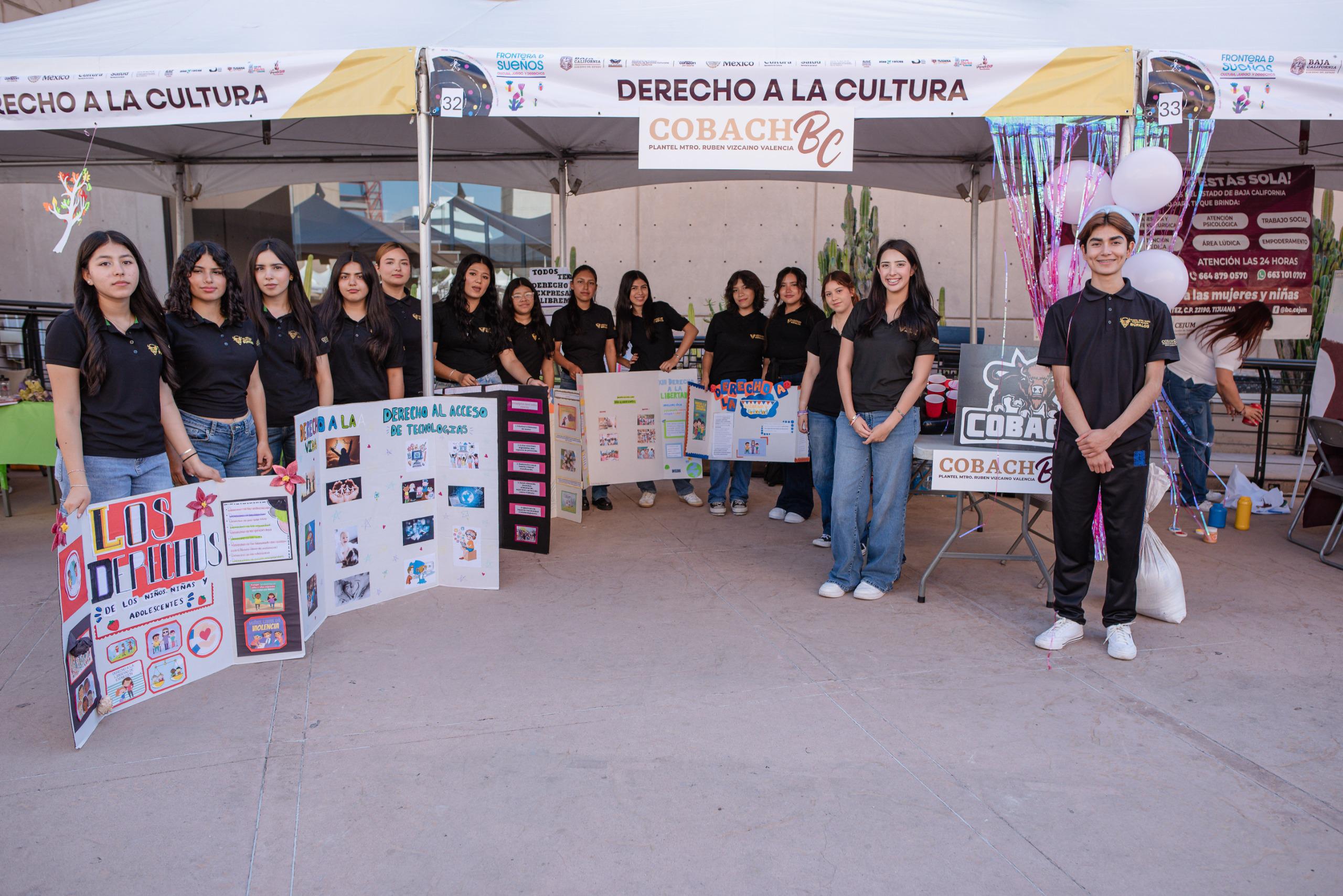 TIJUANA.- En el marco del décimo aniversario de la Procuraduría Federal de Protección de Niñas, Niños y Adolescentes, alumnas y alumnos del Colegio de Bachilleres del Estado de Baja California (COBACH BC), Plantel Mtro. Rubén Vizcaíno Valencia, participaron en el evento “Frontera de Sueños: Cultura, Juego y Derechos”, encabezado por la Gobernadora Marina del Pilar Avila Olmeda y organizado por el DIF Baja California.