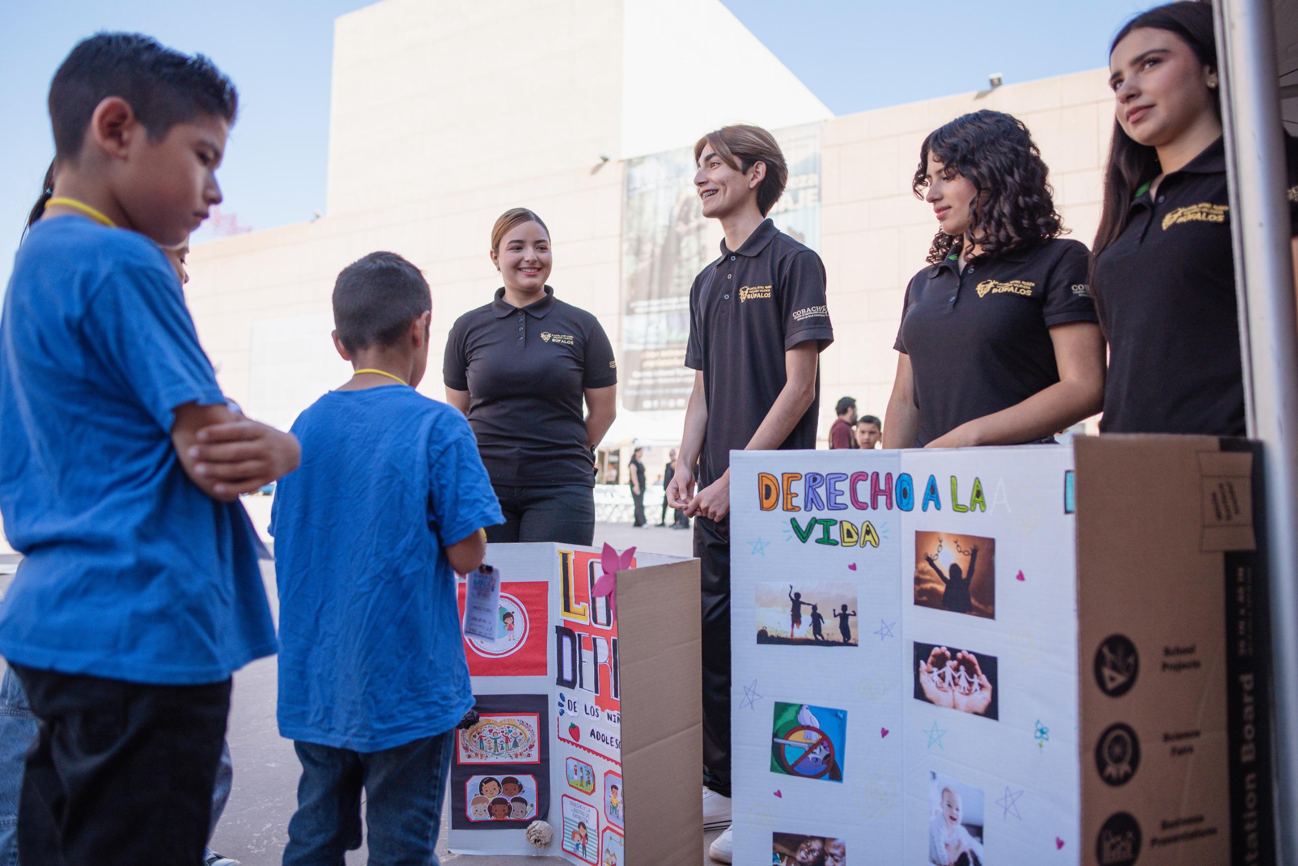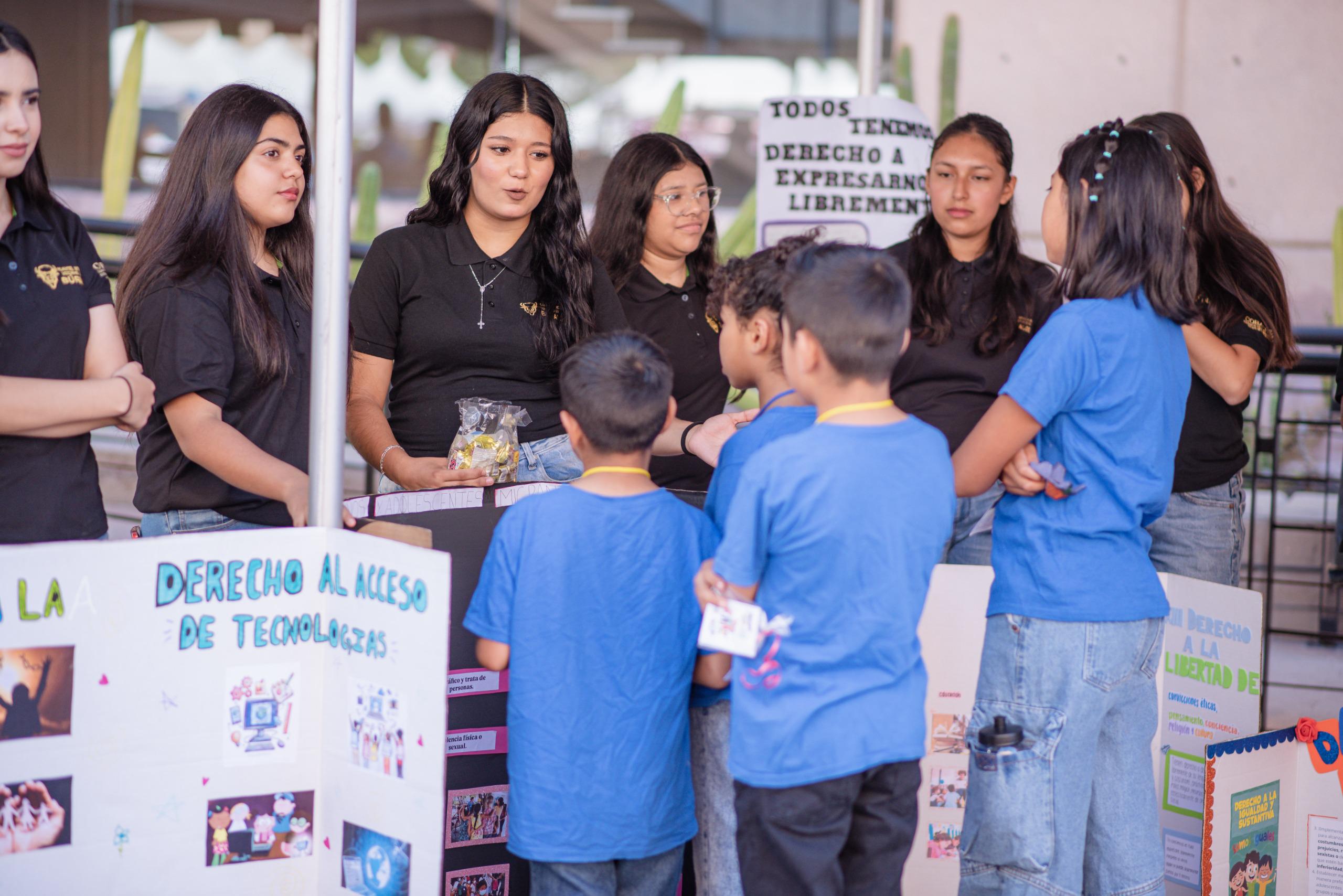 • Durante la jornada “Frontera de Sueños”, las y los alumnos del Plantel Mtro. Rubén Vizcaíno Valencia participaron en el pabellón de los Derechos de las Niñas, Niños y Adolescentes.